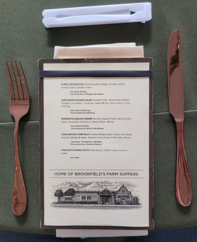 Our last night there, May and I were invited to come along with my parents and some family members to a “Farm to Table” dinner. This is where they take the food fresh from the farm and cook it right up then serve it to you. Mind you, this is only for vegetables; perhaps there is a “Farm to Table” steak version out there somewhere, but I feel like that might be a bit more, uh, messy. Then again, Douglas Adams wrote about this in “The Restaurant at the End of the Universe,” so I like to think that the technology is on its way.