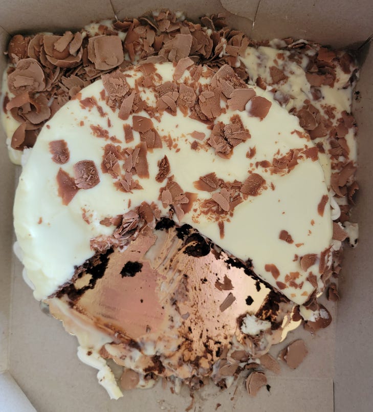 Rest assured that we had a full cake, and I took this after we already cut out some slices to verify the cake type and its quality.